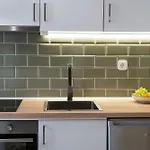 Hay una cocina con electrodomésticos como un hervidor eléctrico, una tostadora y un horno.